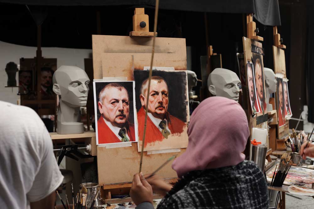 In this lesson the students learn how to get the most out of the limited palette as used by Zorn on a self portrait. This is a good exercise to learn how Zorn simplified the shapes of the face and how he simplified colour structure.