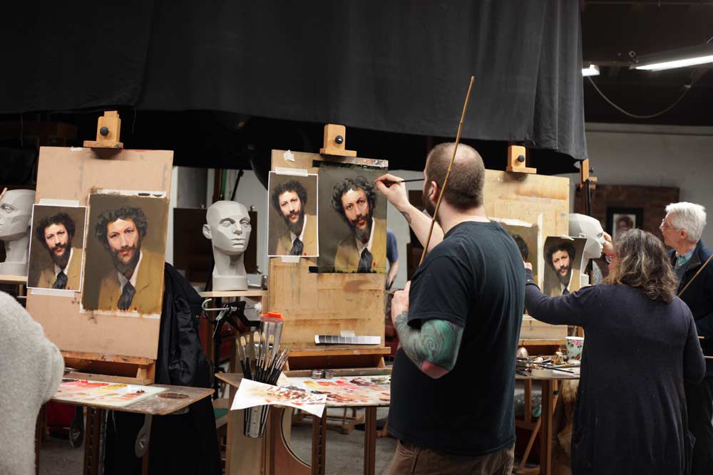 In this lesson the students learn how to get the most out of the limited palette by using both opaque and glazing techniques. This method could be compared to a coloured grisaille with glazes to add chroma and depth to the features of the face.