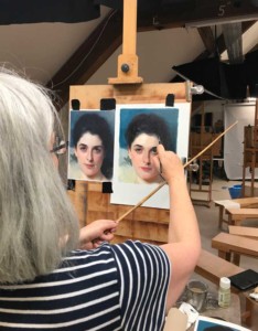 An online option is now provided for graduates of the online portrait painting course. Graduates now get to join in at the academy via Zoom. These are informal classes aimed at brushing up on the techniques taught on the portraiture course.