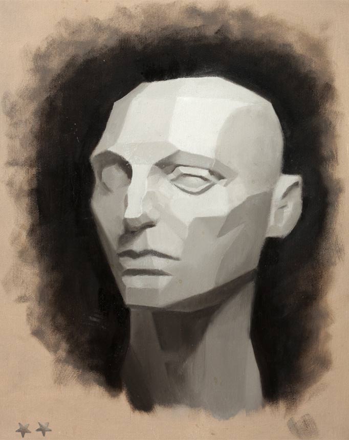Here are some examples of the second exercise to apply the planes of the Assaro Head. The most difficult thing for the students is keeping the tones flat. It’s to tempting to start gardating the tones and softening edges at this point. The examples below are from some of the more tenatious students that had 2 to 3 attemts at this exercise to really understand it. This was set as a homework so hats of to those that put the hours in on this one as it will pay dividens in the longrun.