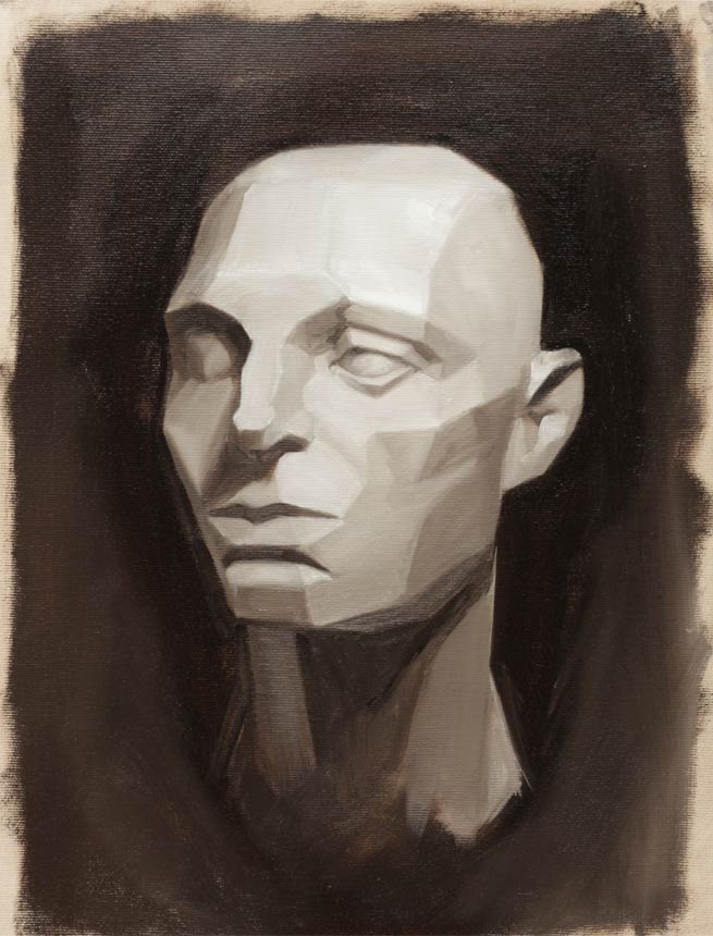 One of the most important learning aids in this program is the Assaro Head. It’s key to understanding the planal relationships of the face. The aim of this exercise to simplify the structure of the head by copying the planes of the Assaro Head and then trying to adapt the template to a persons face.