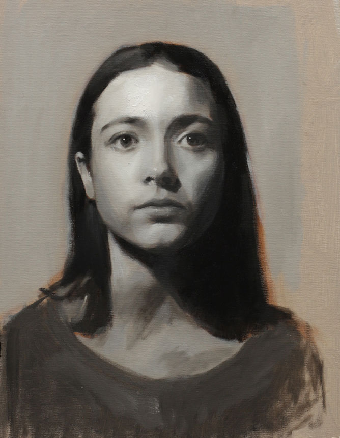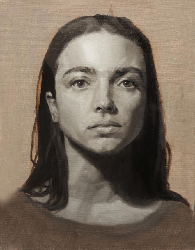 This Grisaille was the first part of a two part project. The aim was to get the most from the model attending in the afternoons. The class rehearsed each step in the morning working from photo references in preparation for the model coming in the afternoons. This was the last grisaille before starting the limited palette.