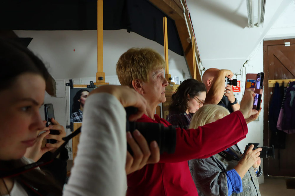 In this class, we covered the basic setup, discussing which lights to use and how to set up the camera. Then we worked through various lighting patterns and poses to best illustrate the sitter.