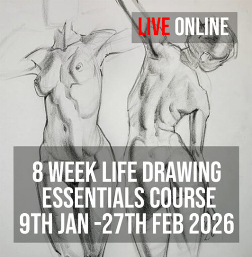 We will be working on top of a black and white underpainting pre-printed onto canvas. Don’t worry if your a beginner the drawing is already done. We will learn how to draw on future courses.