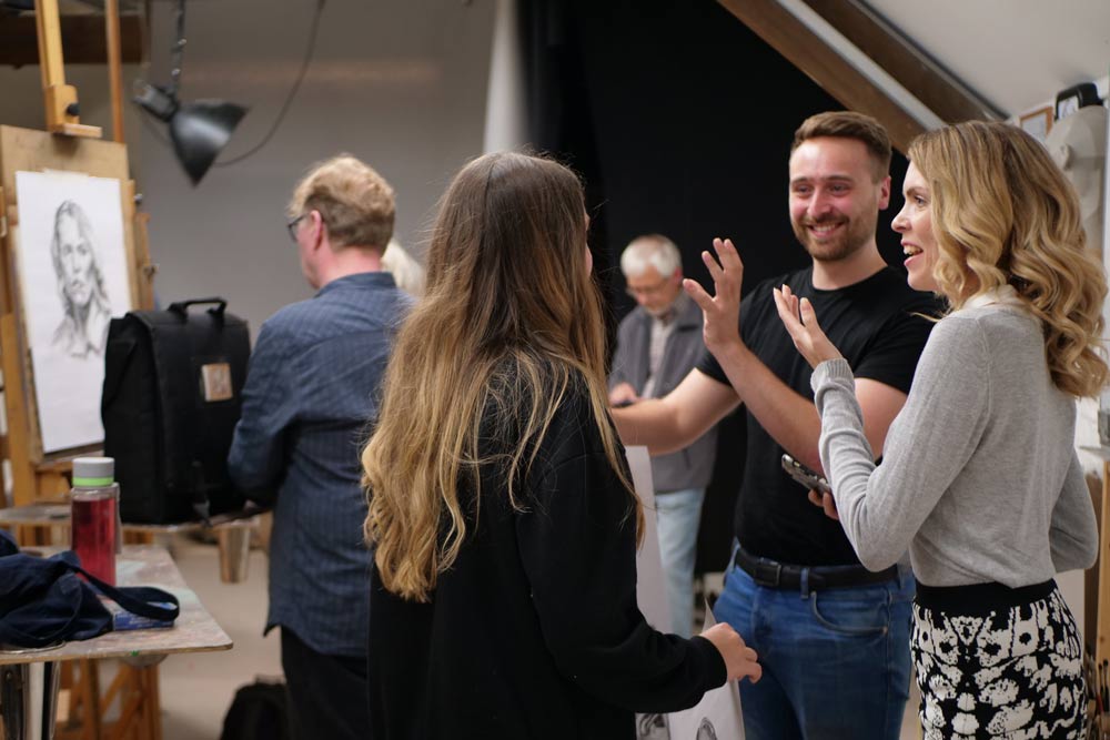 The academy has purpose built facilities. We provide professional easels and benches. The easels are equipped with work stations to help students organise their materials. The layout of the class is centred around the model giving a verity of angles to choose from. The working are balanced 5200K lights used to provide continuity when observing the model and mixing colour.