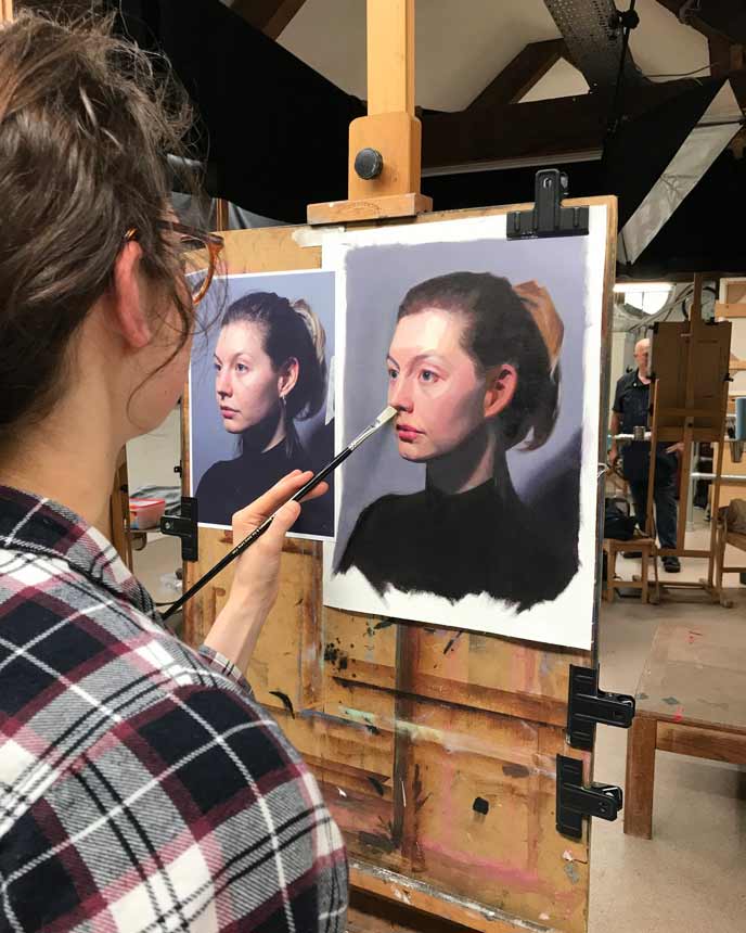 By the end of this 40-week portrait painting course, you’ll not only be painting realistic, expressive portraits, but you’ll also gain the confidence to work independently—whether in a studio or with live models.