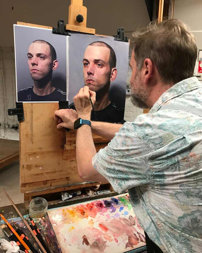 “Before I started the course I was unhappy with the standard of my work. However after a year training with Louis (who is a highly skilled individual) I am pleased to see an improvement in my technical abilities and the quality of my work has improved.I highly recommend the in studio approach, it is invaluable to improve, as the tutor is there to point out where you are going wrong instantly, instead of taking hours or weeks trying to figure things out on your own. The principles and steps which Louis teaches helps to instil a structured, methodical way to painting. You won’t find a better foundation to Portrait painting in the North of England than at The Realist Academy.”Adrian Beamish