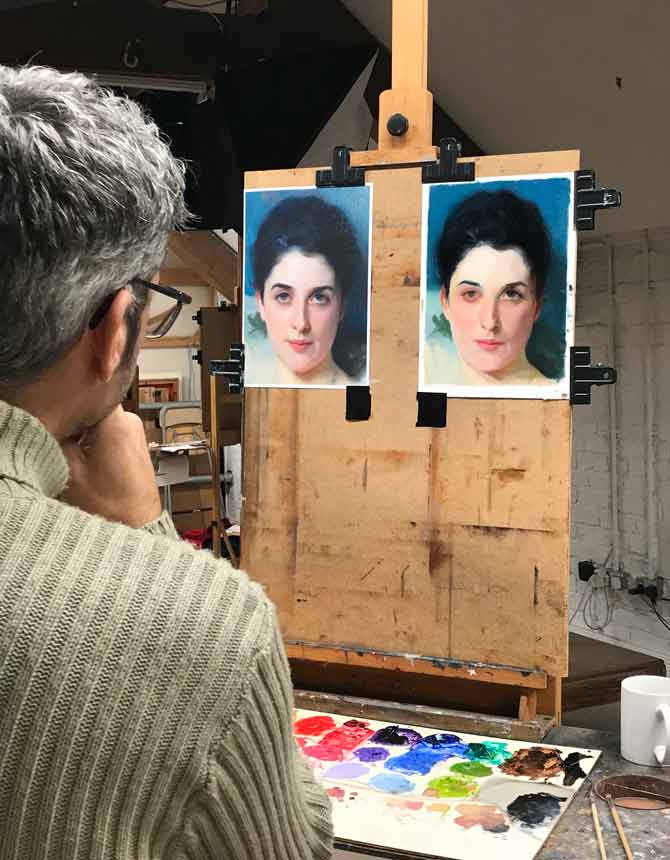 Here are some snapshots from our recent workshop, where students worked on a master copy of Lady Agnew by John Singer Sargent. As you can see, the participants achieved impressive results, capturing the elegance and depth of Sargent’s masterpiece beautifully