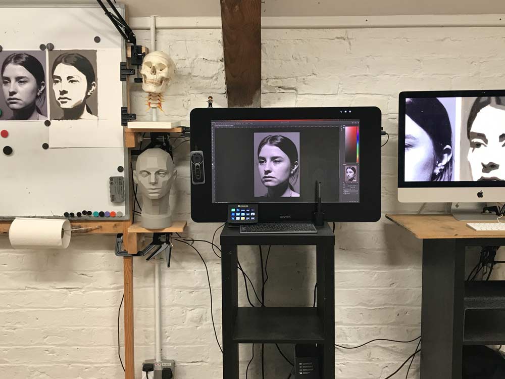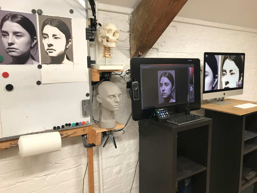 The students get a birds eye view of the demonstration and their work is critiqued in photoshop which they can screen save as reference.